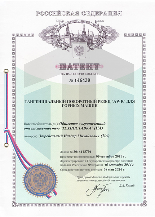 AWR系列截齒實(shí)用新型專利證書